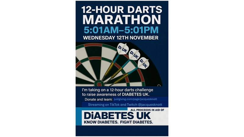 Thanks for taking the time to visit my JustGiving page. Me and a friend are taking on a 12-hour darts marathon in aid of Diabetes UK.