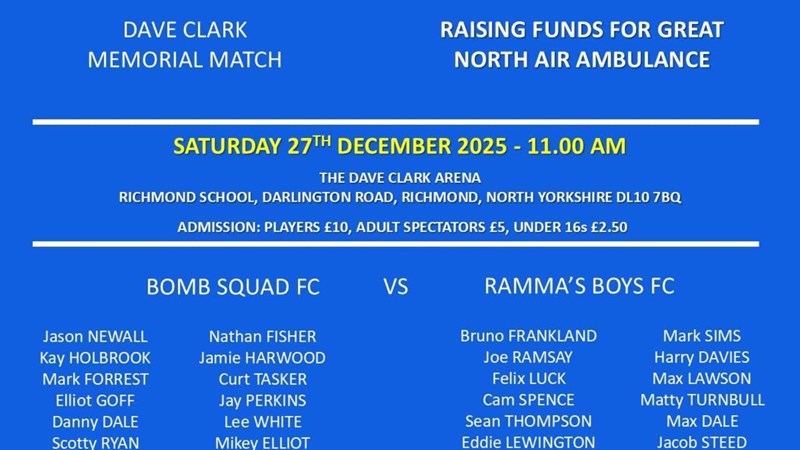 Memorial Charity football match in memory of a legend DAVE CLARK, former deputy head and PE Teacher at Richmond School.