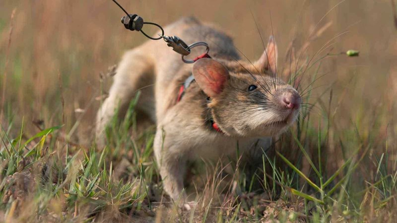 APOPO is a charity which trains Great African Pouched Rats to detect landmines in former (and current) conflict zones. These amazing creatures are trained to detect the smell of TNT and unlike dogs, are light enough to not set the landmines off. They can search an area the size of a tennis court in 20 minutes, whereas the same area would take a human with a metal detector up to four days.