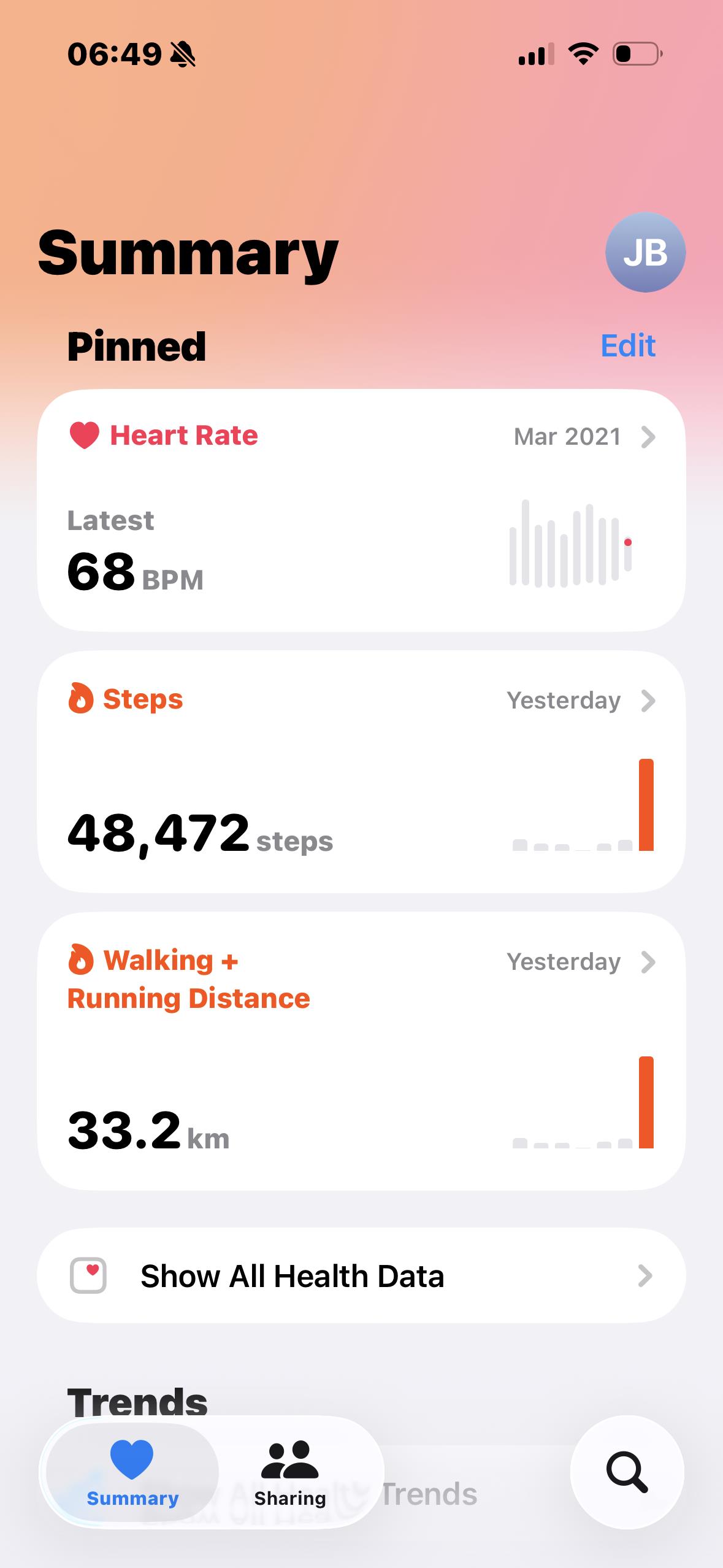 15 walks completed to date. 524k walked so far (326 miles).
