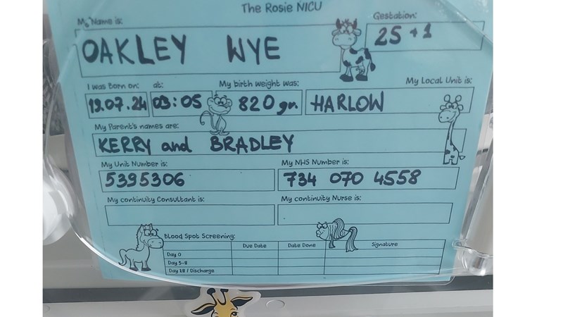 Firstly The Rosie maternity Hospital at Addenbrokes. On 15th July 2024 my Daughter Kerry was bluelighted from Harlow to Rosies Hospital at Addenbrookes as she had apparently gone into labour some 3 months premature with her second IVF baby. The first having been delivered successfully under the glare of TV cameras a coulp of years earlier. Oakley made his apperance a few days later on the 19th July the same day as his Dads, Bead, birthday, but a bit ahead of his due date of 31st October. He weighed in at 1lb 13oz. He then spent the next 2 months being cared for by the fantastic staff at Rosies. Kerry also had to be rushed into surgery following the birth and well Brad must have been beside himself.