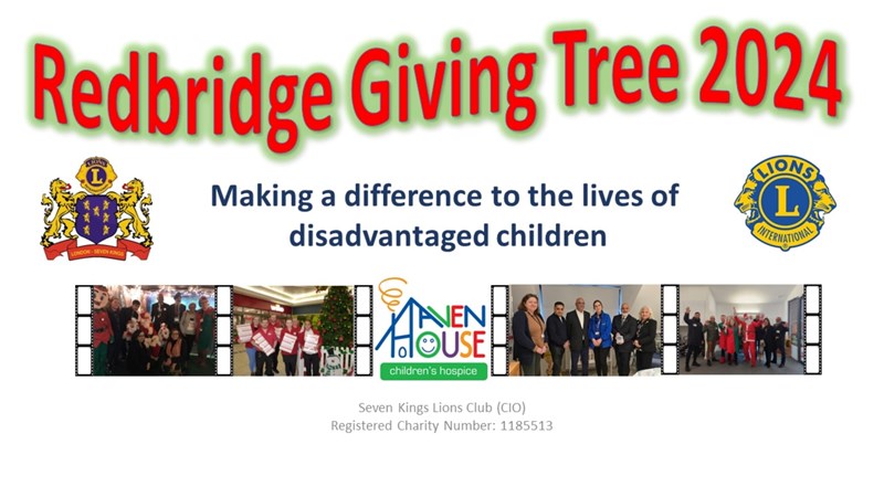 The Redbridge Giving Tree is an initiative set up by the Seven Kings Lions Club to make a difference to the lives of disadvantaged, disabled and seriously ill children. Now in its 10th Year, we have catered for 100’s of children and distributed over £25,000.00 of aid as a direct result of the generous donations we receive.