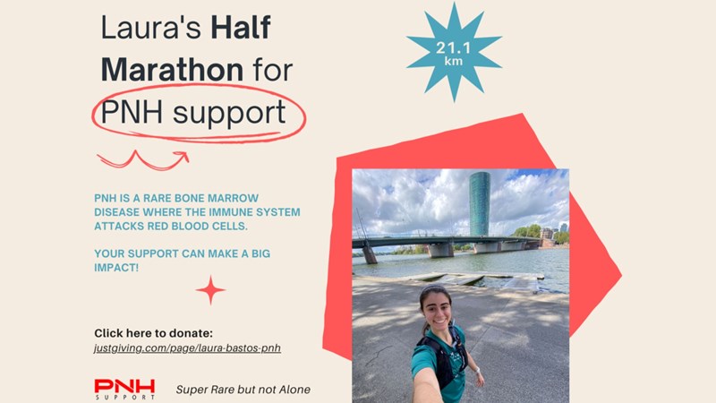 I’m running my very first half marathon (21.1km! 🏃♀️) to raise awareness and support for people living with Paroxysmal Nocturnal Haemoglobinuria (PNH). PNH is an ultra-rare bone marrow disease that affects 5 people per million globally. The disease is caused by a mutation in bone marrow stem cells, leading to the destruction of red blood cells and requires extensive treatment. 🧬