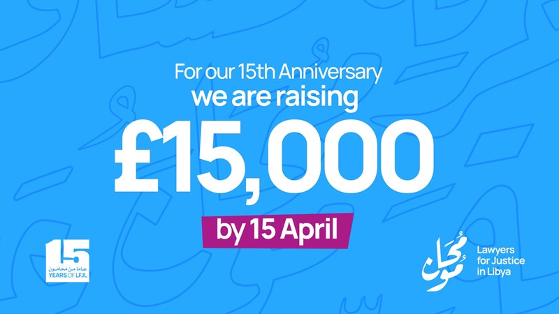 On our 15th anniversary, we are calling on you to join us to continue standing with victims and civil society across Libya. A supporter of LFJL has committed to match donations we receive if we are able to raise £15,000 by 15 April. Support us now and your donation will be doubled when we reach our target together!