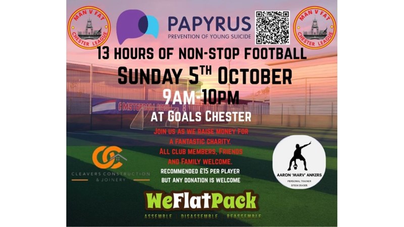 Team: MvF Chester Fundraising for PAPYRUS Prevention of Young Suicide
