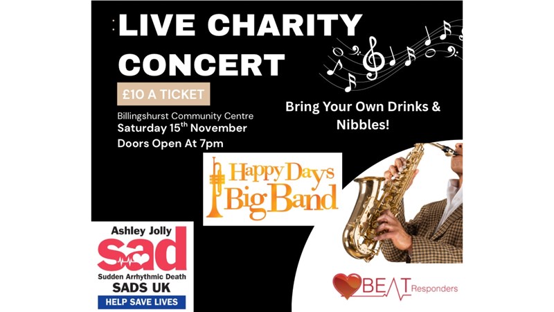 Bringing the Live Charity Concert featuring the awesome 'Happy Days Big Band'! This is going to be a fab night of live music at the Billingshurst Community Centre.