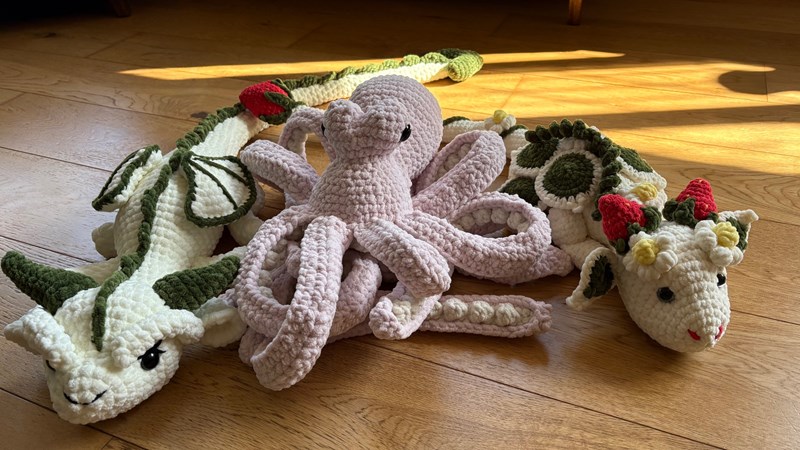 We are raffling three handmade crochet large plushies, to raise funds for Rossington Hall Riding for the disabled.