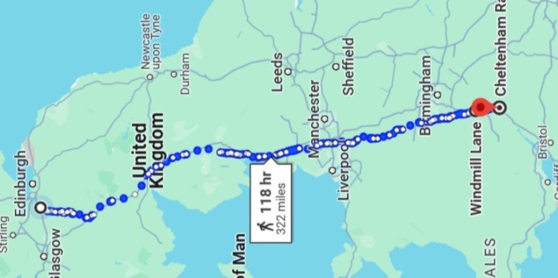 To help raise funds I have decided to walk the distance to Cheltenham by the end of August, a total of 322 miles.