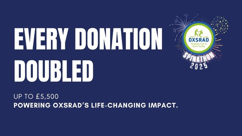 Join us on Saturday 6th December for the OXSRAD Spinathon. Together we’ll cycle 1,500 miles in one day to support inclusive fitness, therapy, and community programmes. Every donation will be doubled up to £5,500, doubling the impact we can make!
