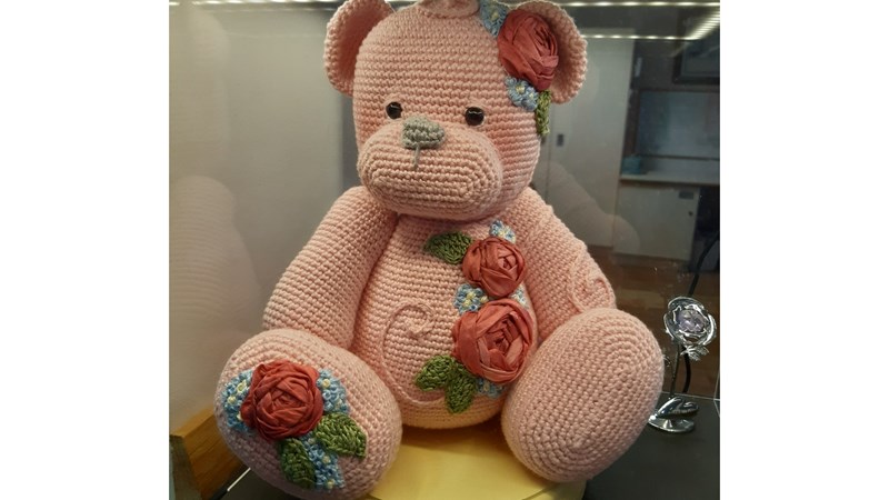 The picture at the top of the page is of the bear that sits on reception at the Pink Rose Suite.