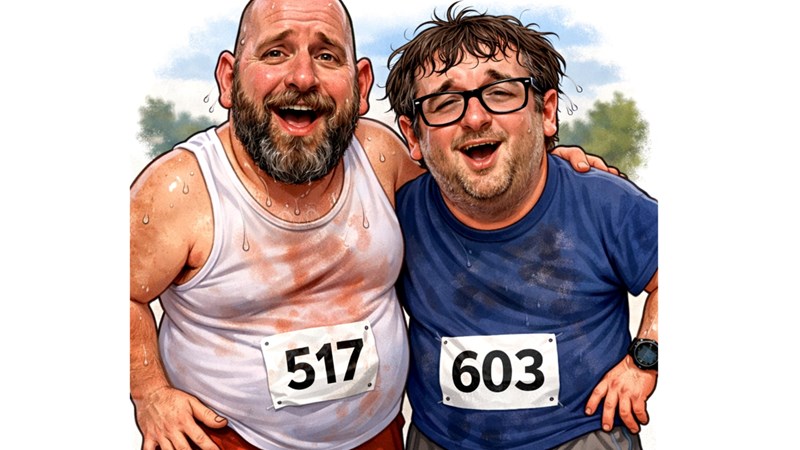 ALERT: Two middle-aged men, Matt & Quino, are about to embarrass themselves at a race to support staff wellbeing at Royal Glamorgan Hospital’s Emergency Department!