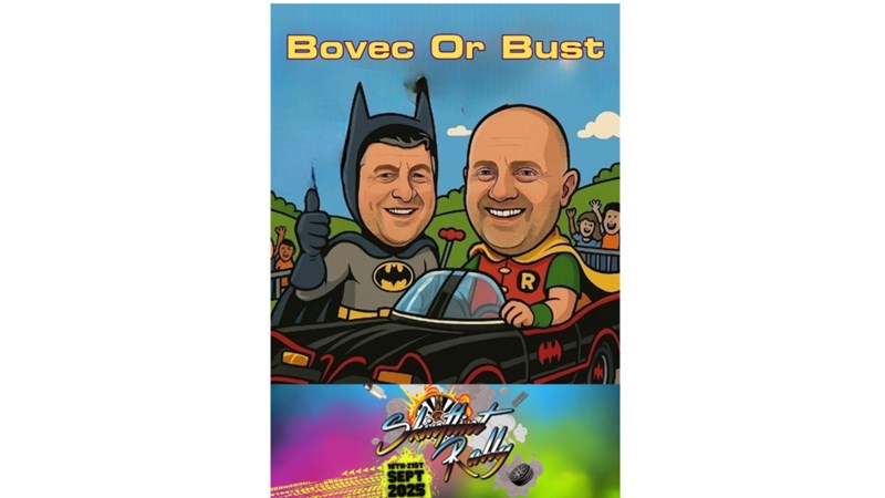 A Team From Melton Mowbray Round Table are driving a £450 Car from Melton Mowbray to Bovec and back with a estimated mileage of 4000 in less than a week all dressed as Batman and Robin with around 25 other cars all in the aid of charity.