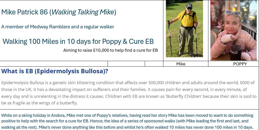 Mike's walking 10 miles a day from 8th April 2026-17th April around Kent