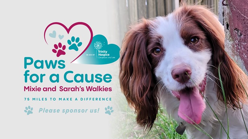 We are excited to share that we will be undertaking a sponsored walk: "Paws for a Cause - Mixie and Sarah's 75-mile Walkies" to support Trinity Hospice .