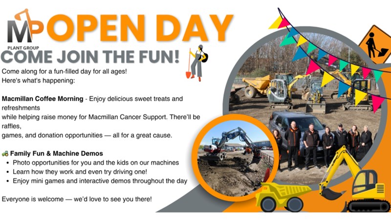 Come join us at our Open Day event! Explore the wonderful world of plant machinery at our location in TS18 2QX. Get ready to learn, discover, and connect with fellow construction enthusiasts. This in-person event promises a day filled with machinery, knowledge, and fun. Not only that, but we are hosting a Macmillan Coffee morning so every penny spent with us is going towards Macmillan Cancer Support. Don't miss out on this opportunity to expand your plant knowledge and collection. See you there!