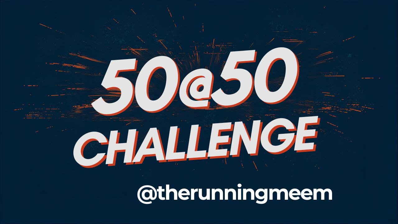 Please share this page and check back for updates as I take on the 50 @ 50 Challenge. You can also follow my journey on Instagram at @therunningmeem