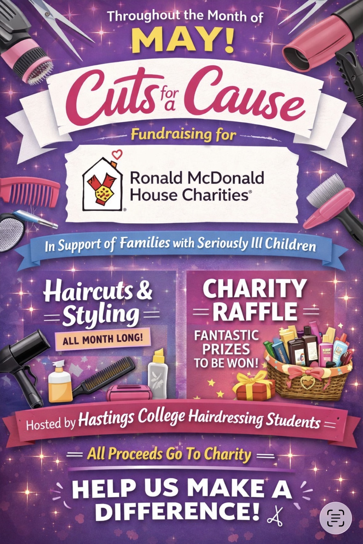 I’m organising a charity fundraising event through our college hairdressing departments in support of Ronald McDonald House Charities—a cause that means more to me than I can fully put into words.
