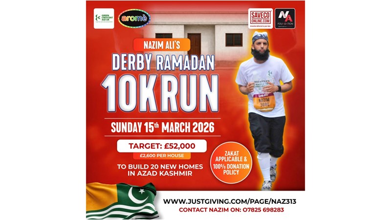 Insh’Allah (God willing) on Sunday 15th March 2026 I will be running my 13th Annual Ramadan 10K Run (whilst FASTING ALMOST 14 Hours) in Derby & will arrive the day before in preparation for my run. Yes, I know sounds crazy with no food or drink! I will arrive in Derby the night before - Hotel, Race Fee & Travel are Self-Funded.