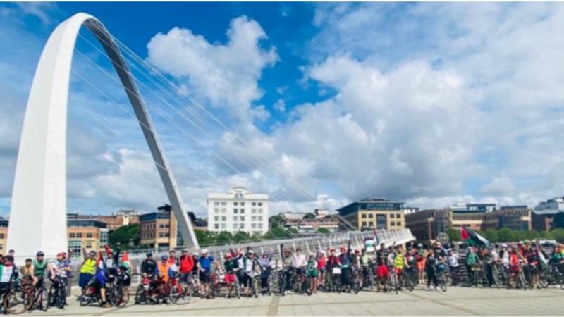 Hundreds of cyclists are taking part in the Big Ride for Palestine. The Big Ride for Palestine has been riding in the UK and Ireland for over ten years following the invasion of Gaza in 2014. We have been protesting the apartheid and ethnic cleansing by the Israeli state against Palestinians since 1948. The recent genocide and weaponisation of hunger has taken things to an even more devastating level. https://www.thebigride4palestine.com/