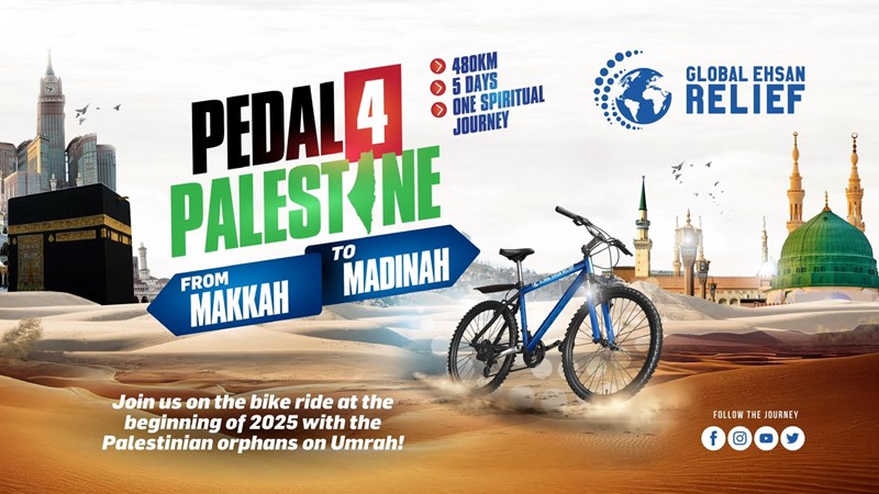 Pedal 4 Palestine is a flagship Cycling challenge from Global Ehsan Relief UK. In it’s first year, participants from across the UK will be taking part in a 4 day long marathon from Makkah to Madinah, covering a phenomenal distance of over 550 kilometers between two of Islam's holiest of cities.