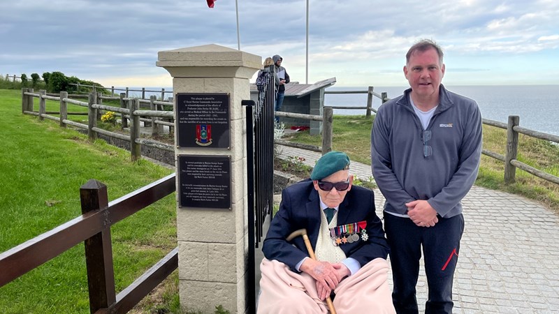 My Dad was one of them, as Captain of Heavy Weapons Troop. Pictured is Mark Packer my friend who served with him. After a chaotic landing in which 76 men were killed, wounded or missing, followed by a 12-mile yomp behind enemy lines and then spending D-Day night about two miles outside Port-en-Bessin, the remaining men of 47 Commando penetrated the outer defences on the afternoon of June 7 1944. In one action, two German flak ships in the harbour opened fire, killing eleven and wounding a further 17.