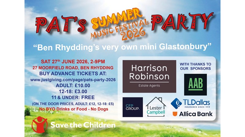 Pat’s Party has raised £187,000 mainly for Save the Children and predominantly through our annual summer musical festival held in a committee member’s garden in Ben Rhydding. Pat's Party also supports the local scout group and a donation of £5,000 was given to build and support a school in The Gambia. In 2023, 2024 and 2025 we also donated £15,000 to the foodbanks in Bradford and Keighley.