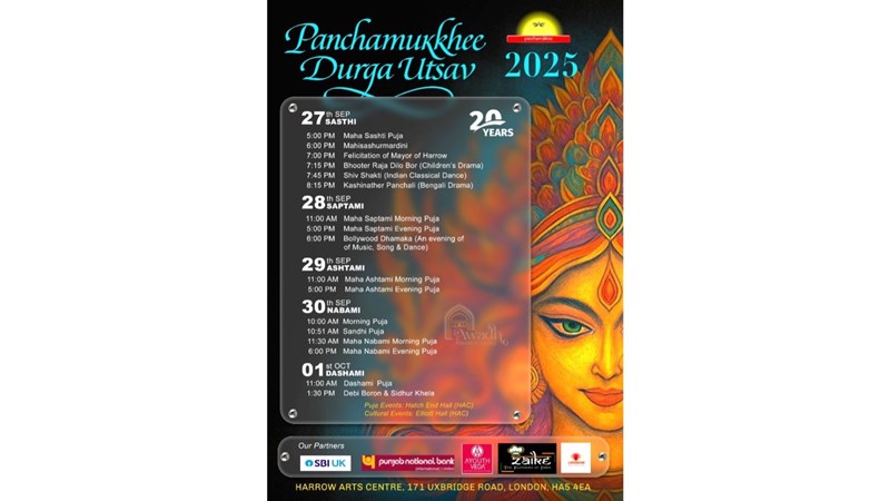 We are celebrating the 20th year of Panchamukhee Durga Utsav between the 27th September and 1st October at Harrow Arts Centre and we look forward to your support. See you there!