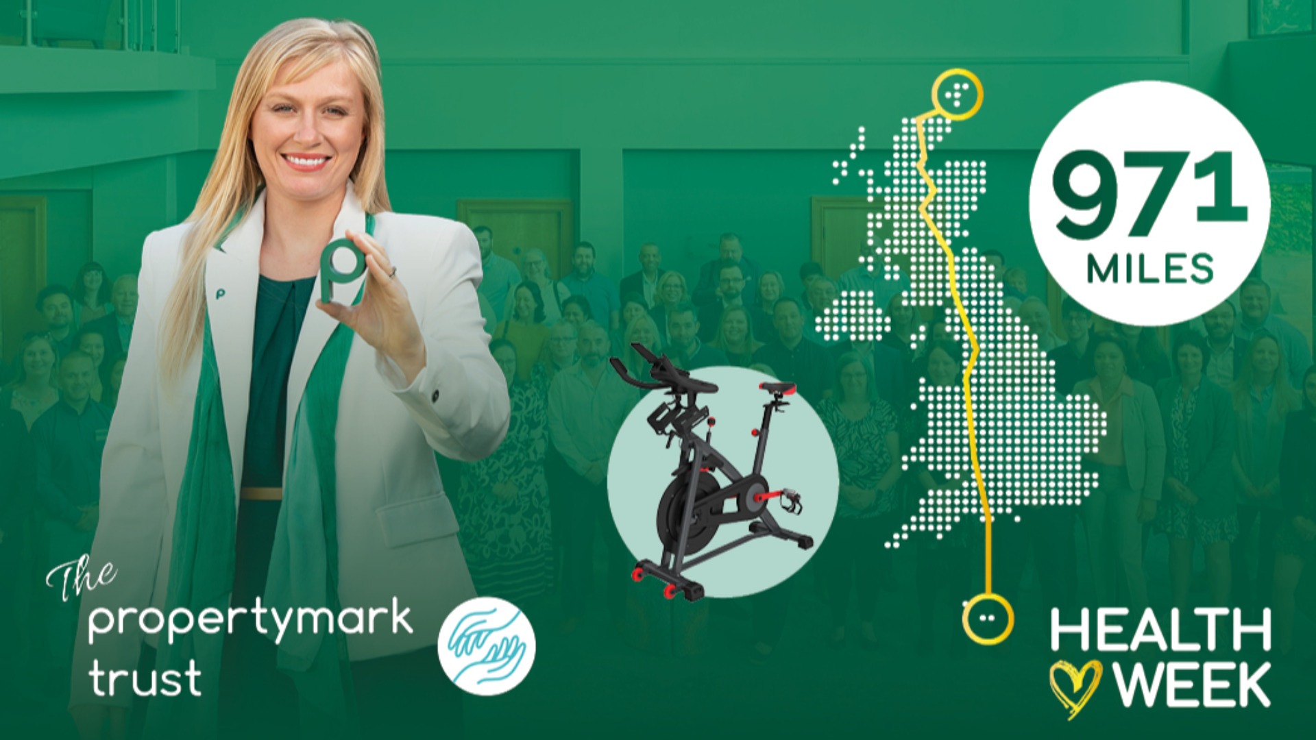 We’re taking on a sponsored static bike challenge with bikes set up across Propertymark HQ. Colleagues will be hopping on throughout the day to collectively cover an ambitious 971 miles—the distance from our most northerly Propertymark member to the furthest south (by bicycle).