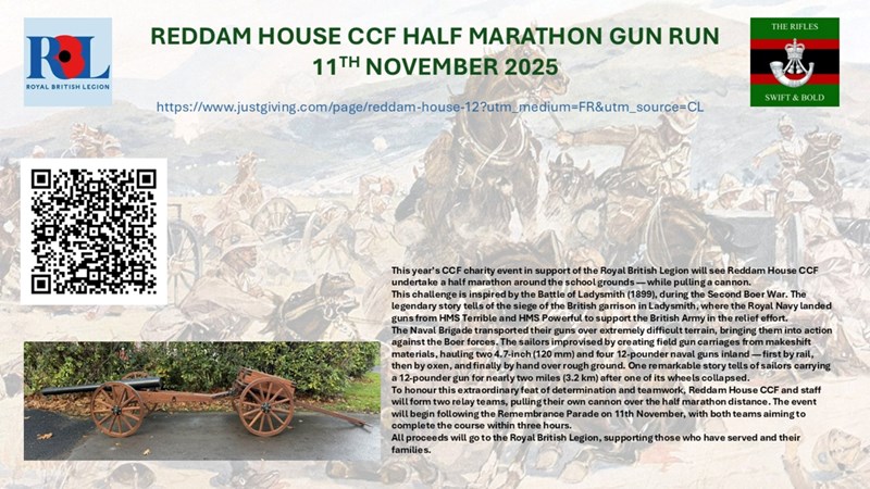 To honour this extraordinary feat of determination and teamwork, Reddam House CCF and staff will form two relay teams, pulling their own cannon over the half marathon distance. The event will begin following the Remembrance Parade on 11th November, with both teams aiming to complete the course within three hours.