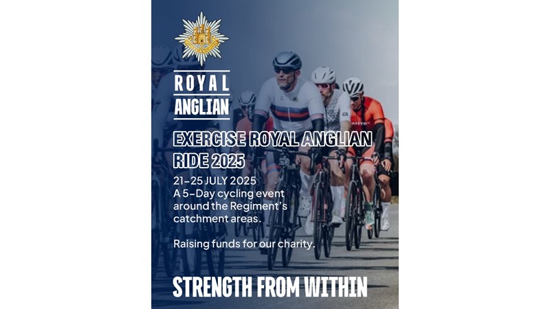 Join us on an incredible journey as we embark on "The Royal Anglian Ride 25," a five-day endurance cycling event designed to raise vital funds for the Royal Anglian Regiment Charity. From July 21, 2025, we will cover over 550 miles through the regiment’s traditional recruiting areas, uniting Service Personnel, veterans, and communities along the way.