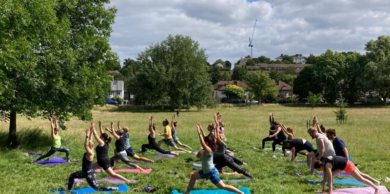 Charity Yoga in the Park Class in aid of Cancer Research UK