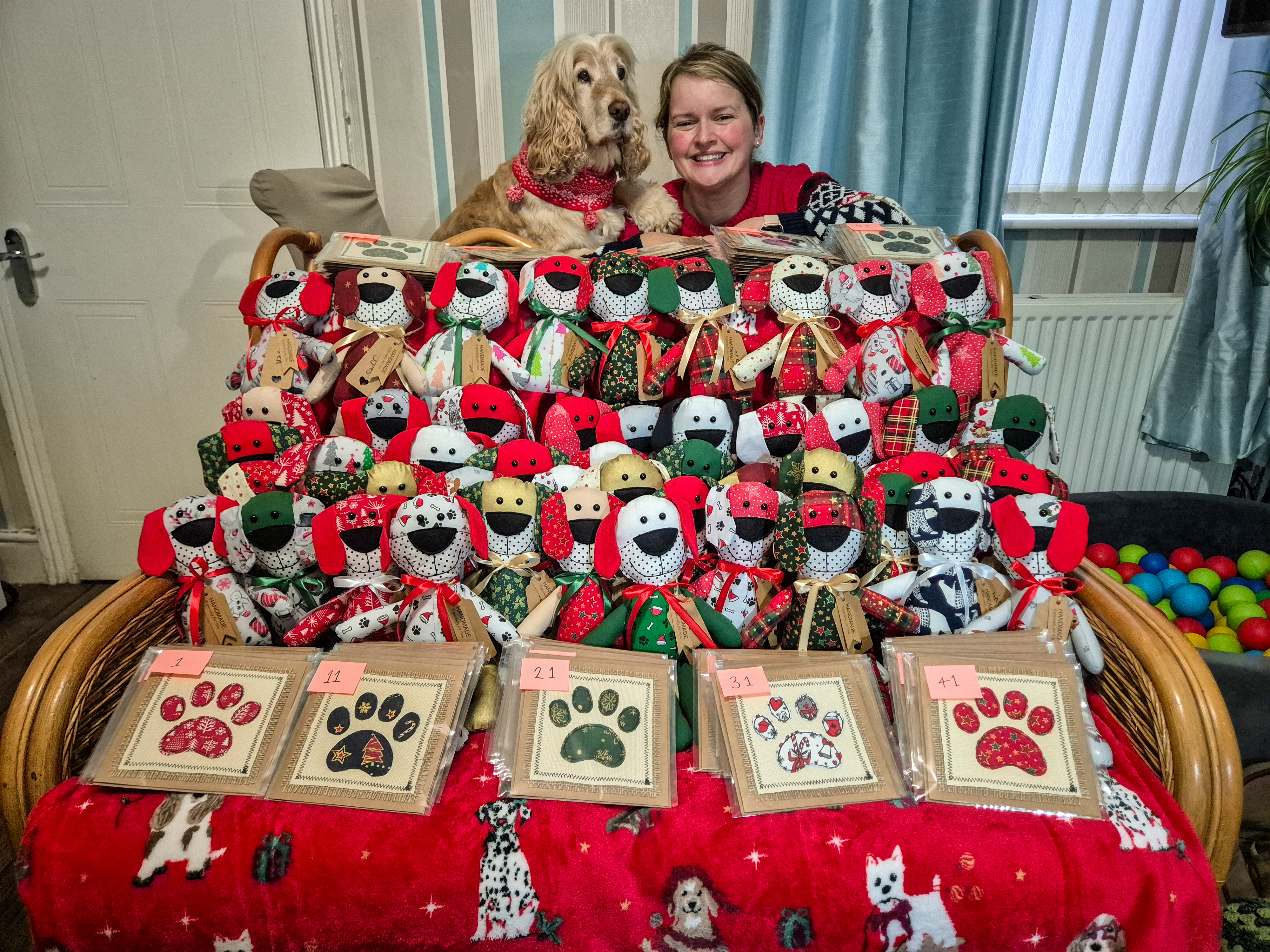 So this Christmas, I've bought them back... with a festive twist! 50 Christmas dog plushies!