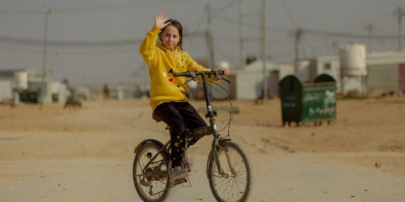 Jana*, age 13, pictured at the top of this page, is riding her bicycle from her home to the Coaching for Life pitch. The Coaching for Life programme uses the power of football to improve the physical, mental, and emotional wellbeing of children.