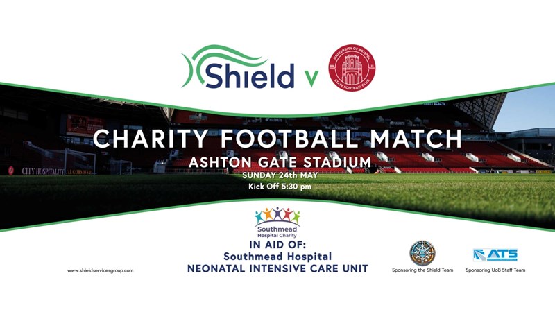 Come join us for an exciting football match between Shield Services Group (sponsored by AJD Air Conditioning Ltd) and University of Bristol Staff Football Club (sponsored by Associated Technology Services Ltd) at Ashton Gate Stadium. All proceeds will go to the Neonatal Intensive Care Unit (NICU) at Southmead Hospital.