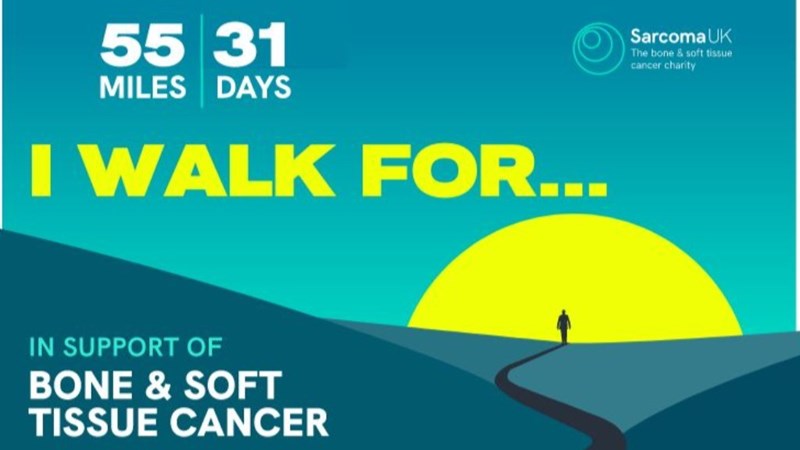 Thank you for visiting my page. I've chosen to join the Walk For challenge, doing 55 miles in 31 days for Sarcoma UK, a national charity that funds vital research, offers support for anyone affected by sarcoma cancer and campaigns for better treatments.