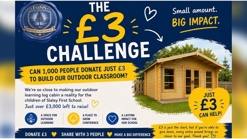 Can you spare just £3 to help us build an outdoor classroom for the children of Slaley First School?