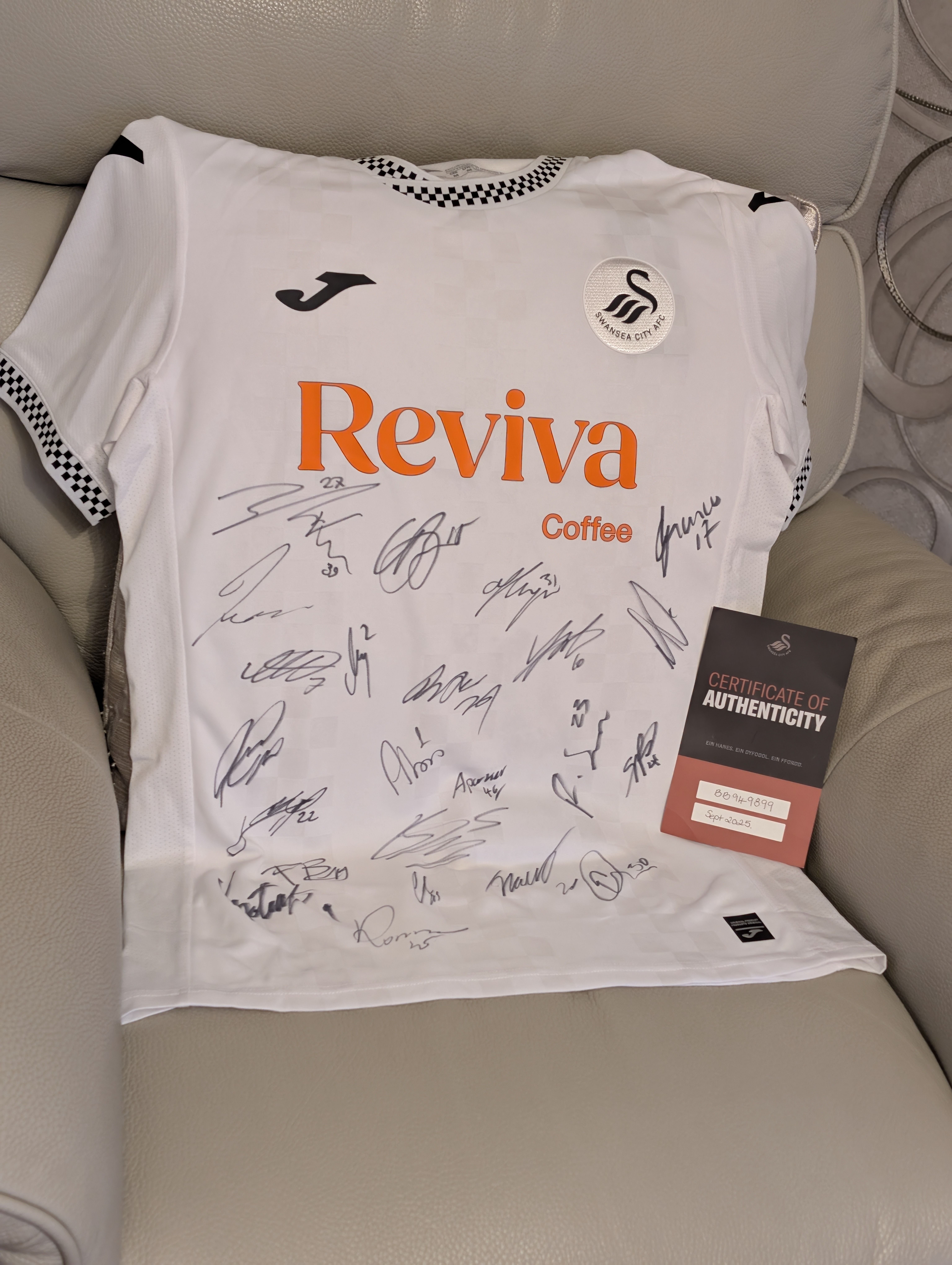 We have been incredibly lucky to receive a signed 2025 shirt from Swansea City, complete with a certificate of authenticity — all donated to help raise vital funds for our beautiful girl, Liwsi 🤍