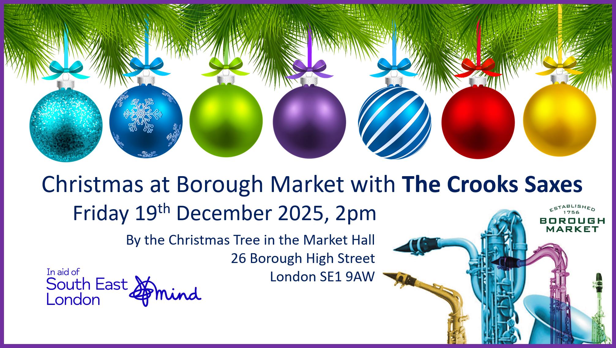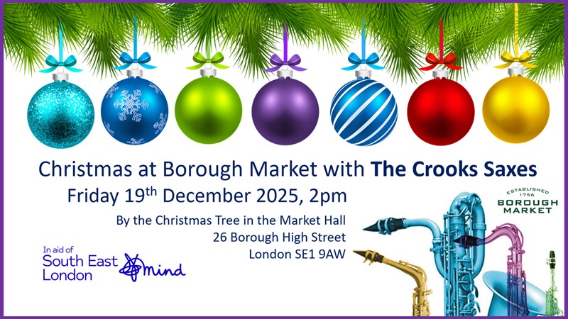 The Crooks Saxes are delighted to be playing at Borough Market this Christmas in aid of South East London Mind.