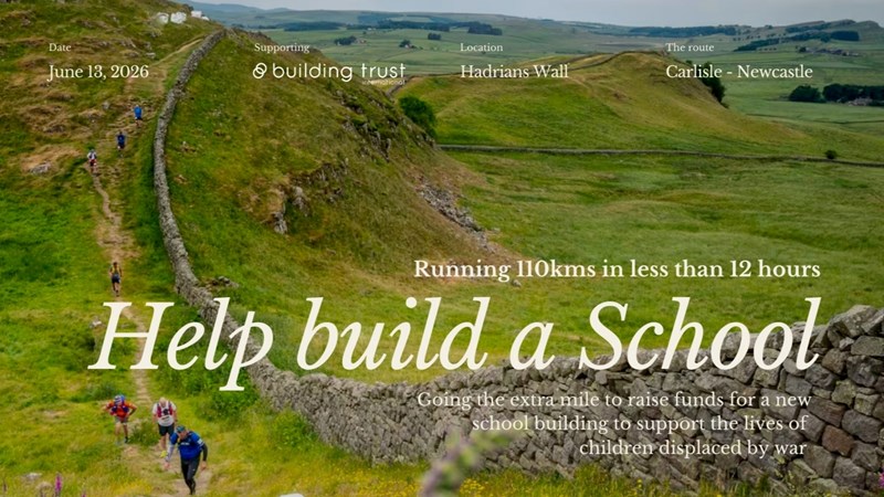 We are excited to repeat our amazing marathon fundraiser success of 2025 with an even greater challenge. This year we are going to run the breadth of the UK, along the historic Roman remains of Hadrian's Wall, covering approximately 110 km. This personal challenge is not just about pushing our limits; it’s about making a real difference. Our target this year is to raise £10000, 100% of which will go towards the materials to build a new school to support the education of children displaced and marginalised by war.
