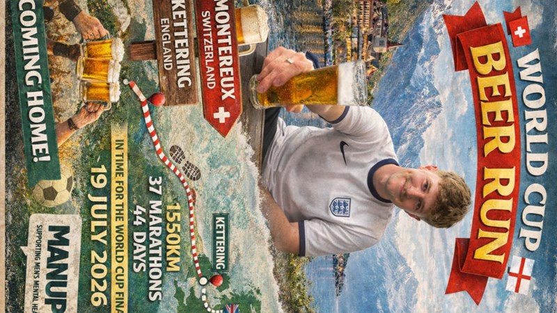 This summer, I’ll be walking 1,550 km from the Alps in Switzerland all the way back home to my local pub in Kettering — aiming to arrive in time for the World Cup Final on 19 July 2026.