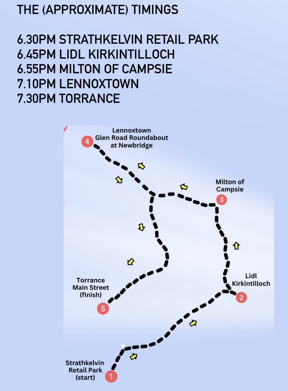 Route: Strathkelvin Retail Park - Lidl Kirkintilloch - Milton of Campsie - Lennoxtown -Torrance Main Street