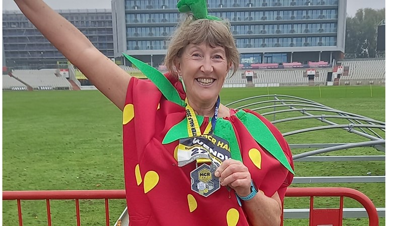 Why the Strawberry costume? One of the Gem Appeal's most popular annual fundraising event is the Strawberry Sparkle Ladies Lunch, held in August in Rochdale, so I took my inspiration from that. And, for a genetic connection, 60% of a strawberry DNA, is the same as a human's! Who knew?!