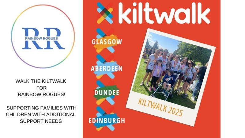 I'm walking < > miles for the Kiltwalk in < > on < > to help raise vital funds for Rainbow Rogues which is a charity based in Potterton, supporting families with children with additional support needs across Aberdeen City and the Shire.