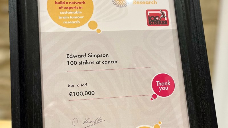 100 strikes is inspired by the determination of Edward Simpson as he kicks his way toward raising £100 k for Brain Tumour Research.