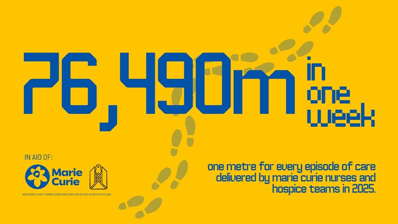 We know. A very specific number. That’s because it represents the 76,490 episodes of care delivered by Marie Curie nurses and hospice teams in 2025. Every kilometre stands for someone being looked after at one of the hardest moments of their life. Not in a big dramatic way. Just properly. Kindly. When it really counts.