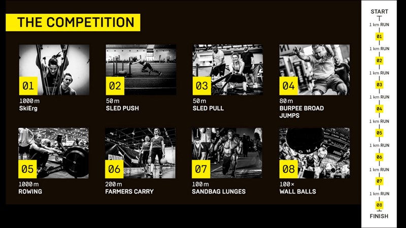 HYROX is the fitness race that combines both running and functional fitness. We'll be competing in pairs in the womens doubles, taking on a course of a 1km run followed by 1 functional workout station, repeated eight times.