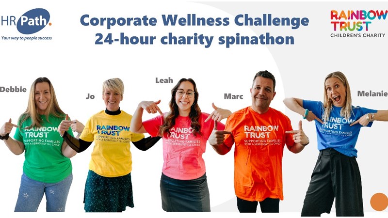 Debbie, Leah, Melanie, Marc and Jo are cycling a 24-hour relay on two static bikes for the Rainbow 🌈 Trust Children's Charity. We are sleeping 😴, eating 🍰 and cycling 🚲 in our office in full view of our colleagues from PlusHR, Consult HR and HR Path 😱 to support this incredible cause ⭐. We are proud to share that our parent company HR Path will be making a contribution 😉. This challenge starts at 6pm on Thursday 9th to 6pm on Friday 10th February!📅🌜🌞