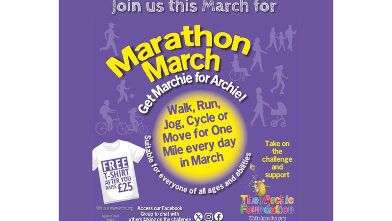 Walk, run, wheel a mile everyday throughout March. That's a full marathon by the end of the month! However you move, do it to help us make the difference in healthcare and bereavement for children and their families in the North of Scotland.